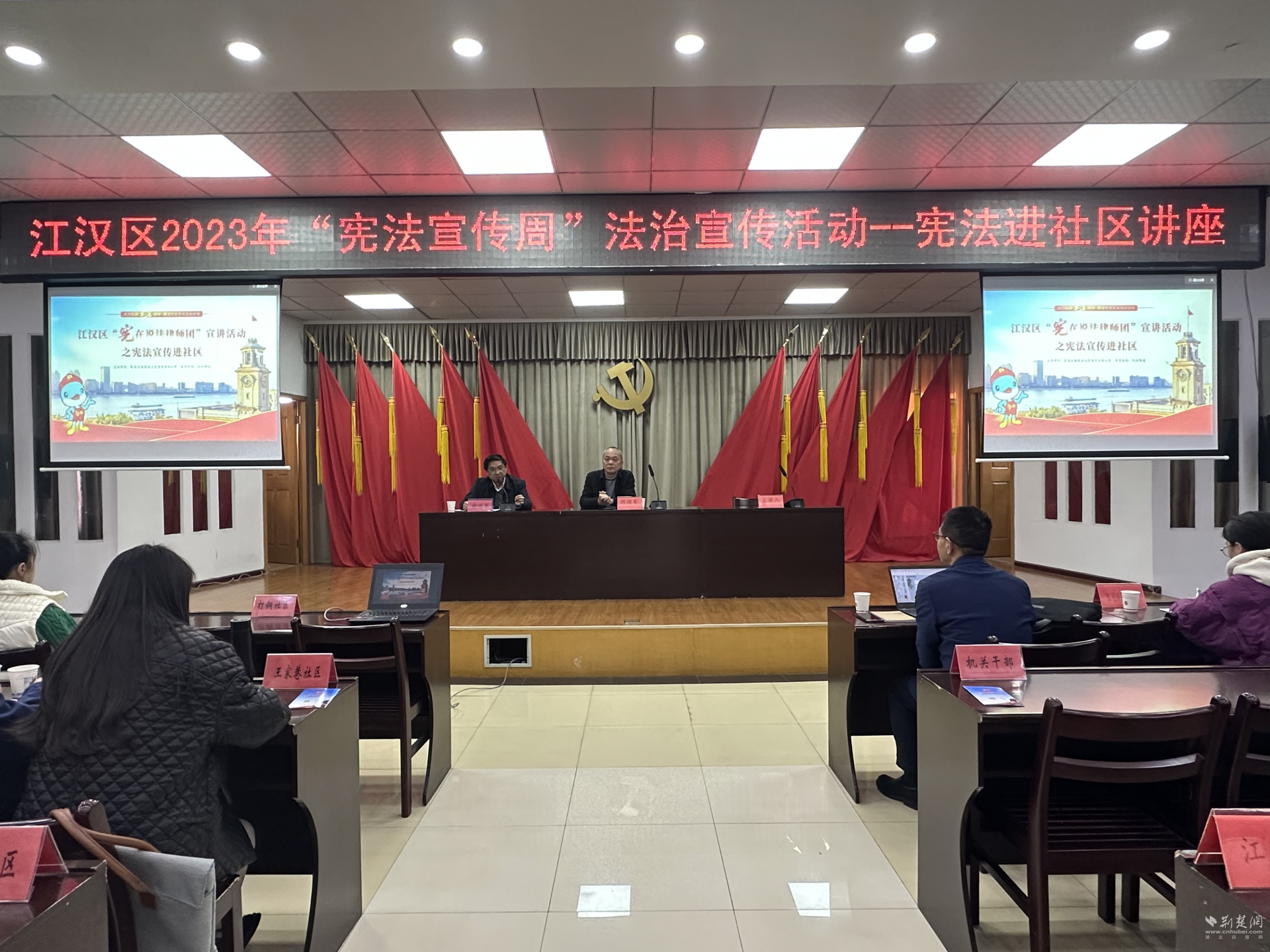 荊楚網(湖北日報網)訊(通訊員 程曦)為進一步弘揚憲法精神,傳播法治理念,12月5日下午,武漢市江漢區委全面依法治區委員會辦公室、區司法局、民權街道聯合組織開展“‘憲’在說法律師團”宣講活動之憲法宣傳進社區活動。江漢區司法局、民權街道辦事處相關領導出席此次活動。
