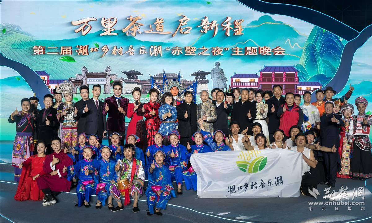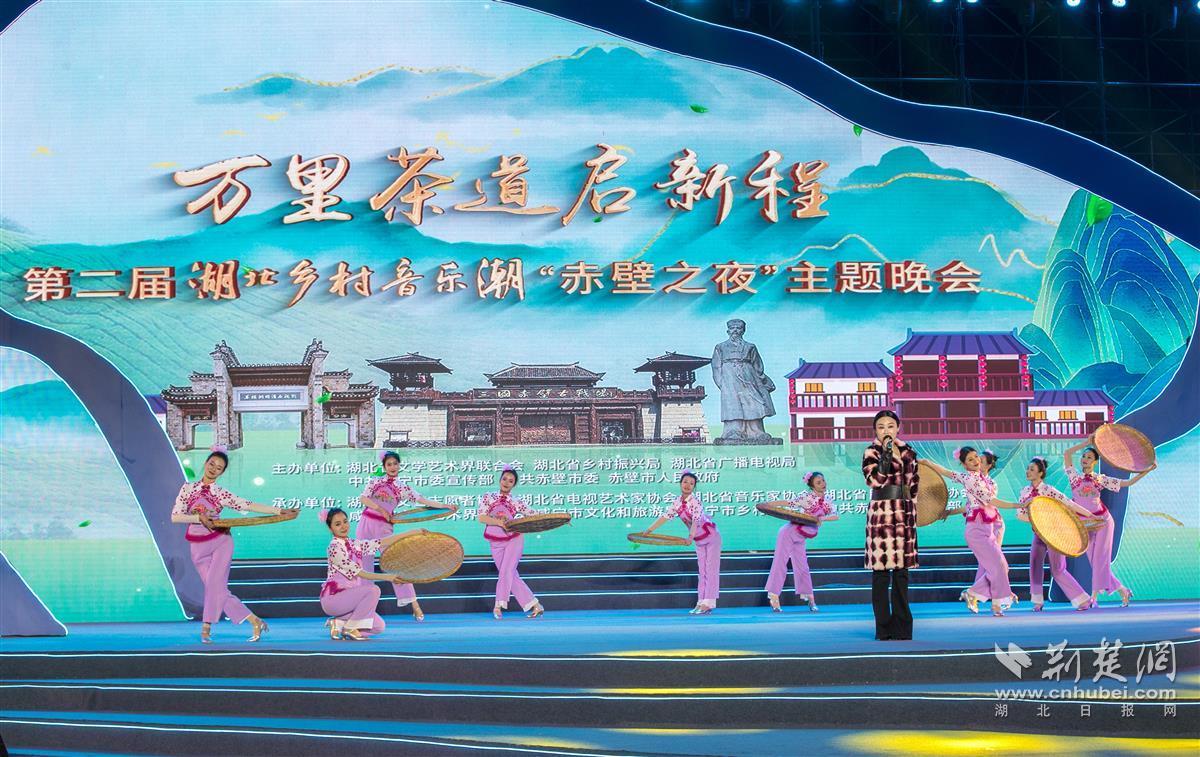 本次晚會所在地赤壁因赤壁大戰而聞名,赤壁地處萬里長江的中段,赤壁亦是萬里茶道的起點。青年歌手李祎麟、肖可欣帶來的2023年“村村有歌”湖北鄉村振興原創歌曲優秀作品《青磚茶》,青年歌手崔余意、沈曄嶼攜手演繹的第二屆鄉村音樂潮原創赤壁主題歌曲《我要告訴你》,將赤壁之美、茶道之妙娓娓道來。