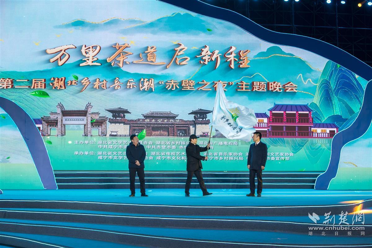 晚會最后舉辦了第三屆湖北鄉村音樂潮授旗儀式,湖北省文聯黨組書記、常務副主席張士軍從赤壁市委常委、宣傳部部長吳云南手中接過“湖北鄉村音樂潮”旗幟,授予第三屆“湖北鄉村音樂潮”舉辦地沙洋縣,沙洋縣委常委、宣傳部部長陳小云接過旗幟后,第二屆“湖北鄉村音樂潮”系列活動圓滿落幕。本次主題晚會由第二屆湖北省最美文藝志愿者、湖北衛視主持人段建海,湖北衛視主持人劉熙燁,赤壁廣播電視臺主持人王映山共同主持。由湖北省廣播電視臺首席導演、省電視藝術家協會駐會副主席郭光俊擔任藝術總監,由首屆全國最美文藝志愿者、省文藝志愿者藝術團團長尤一心執導,湖北省歌劇舞劇院擔任伴舞。