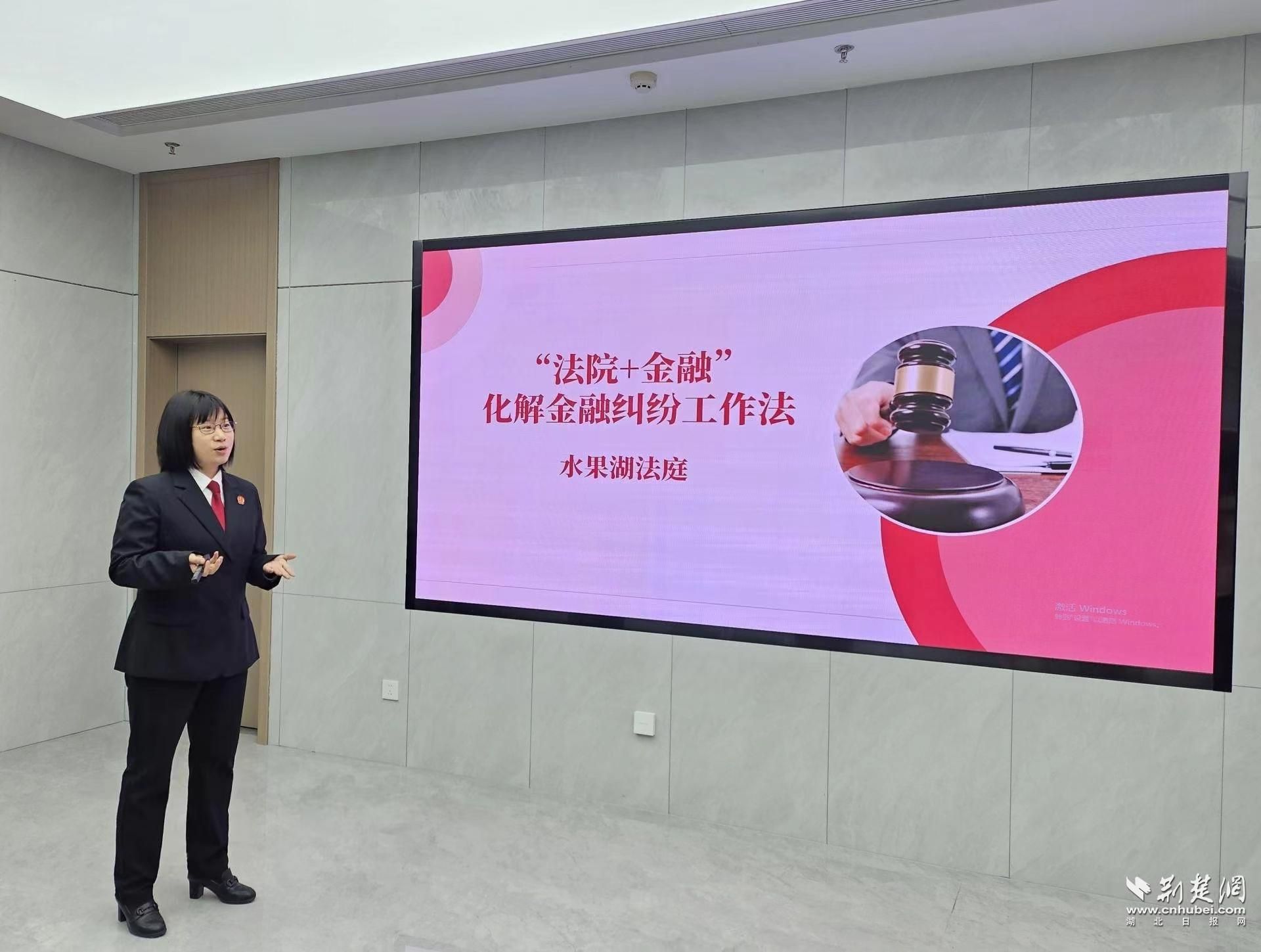 專業審判對接行業調解,共繪金融解紛新“楓”景。水果湖法庭變過去金融解紛法院唱“獨角戲”,為各金融主體“大合唱”,構建訴調對接全鏈條銜接參與化解金融糾紛“武昌模式”。據了解,2023年,水果湖法庭新收金融訴訟案件總量同比下降9%,一審服判息訴率升至97%,大量金融糾紛被調解在訴前、化解在基層。