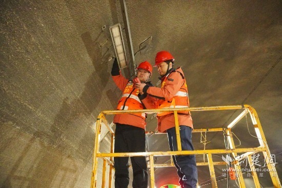 “一個良好的隧道照明系統,有利于駕駛員快速適應隧道內外光強度的變化,最大程度避免交通事故發生。”負責維護隧道的揚鞭和同事爬上高高的登高車,逐一排查線路、緊固螺絲,按標準規范進行預防維護,確保照明設施穩定運行。“湖北交投 楚天智能”印刻在他胸前的反光背心上,明亮的隧道里格外耀眼。