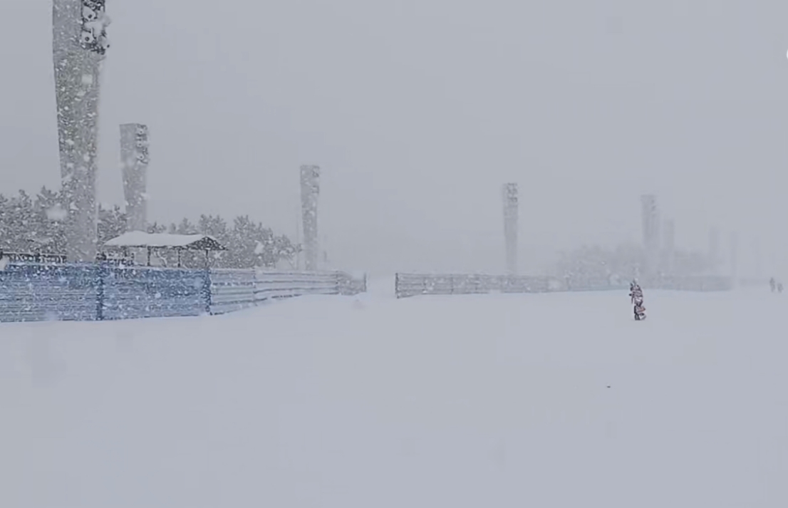 煙臺大學東門附近,冷流雪正在狂暴,宛如北極科考。微博網友視頻截圖