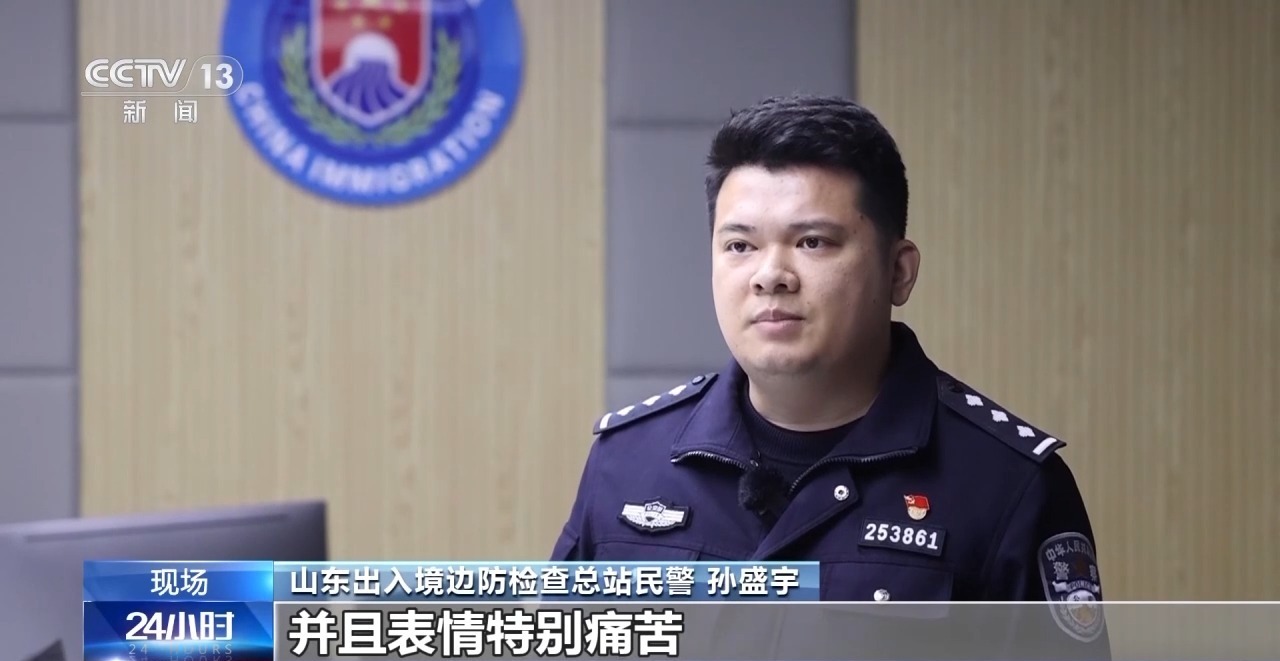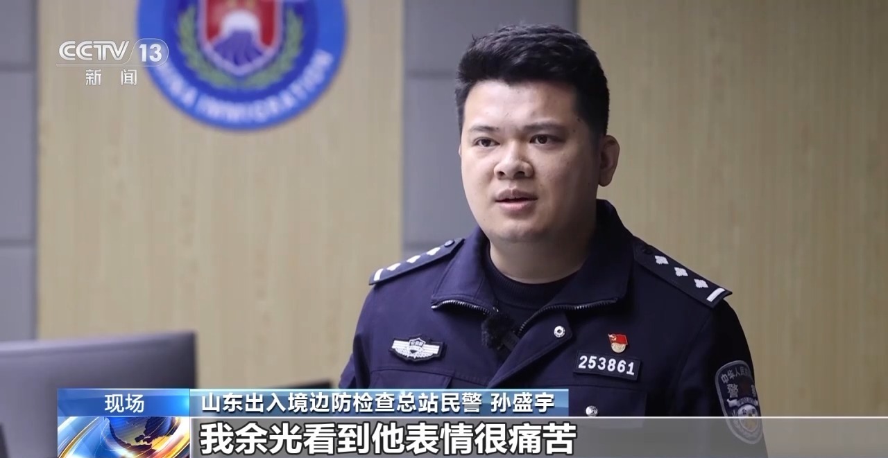 山東出入境邊防檢查總站民警 孫盛宇:我余光看到他表情很痛苦,并且一直沒動筷子,我想可能有情況。