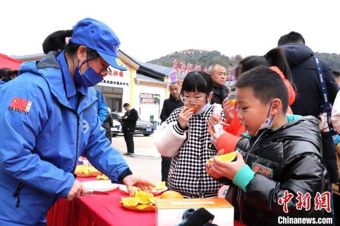 小朋友品嘗岳秀臍橙。中新網記者葉茂 攝