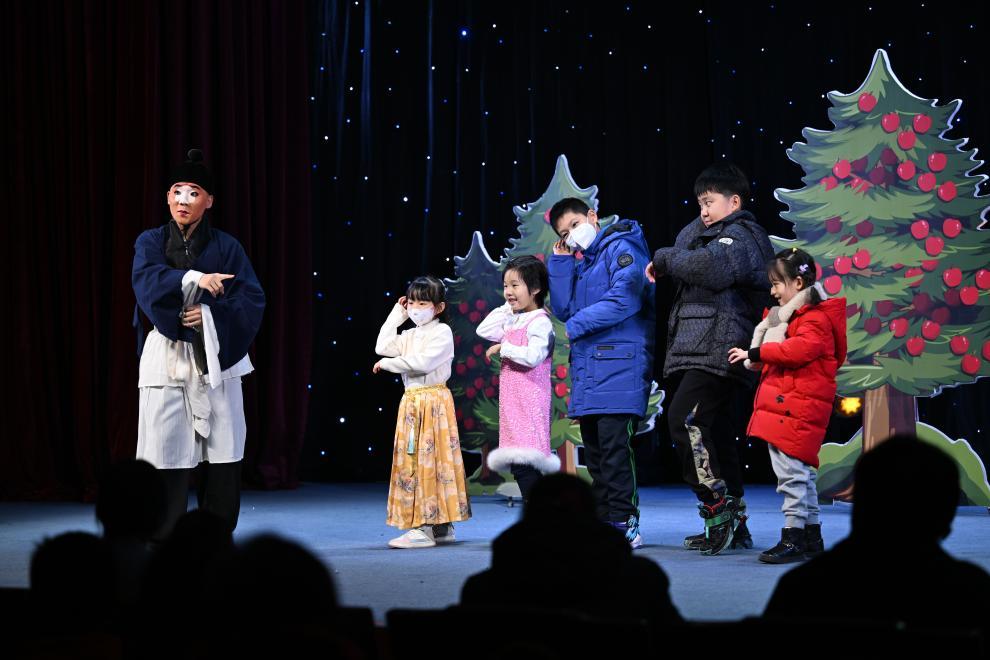 12月23日,演員邀請兒童觀眾上臺互動。新華社記者 孫凡越 攝