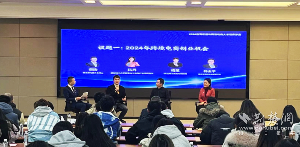 伍家崗區商務局黨組成員、伍家崗區電商產業發展服務中心主任王召賓,阿里云計算有限公司數字政府資深專家古俊分別發表致辭。eBay湖北區商務拓展經理格里、湖北省數字技術研究與試驗發展協會副秘書長楊金平、武漢輕工大學跨境電子商務產業學院院長呂丹博士先后圍繞“2024出海品類中的藍海與紅海”、“2023年前三季度湖北省出口數據分析”和“跨境電子商務產業學院區域合作”進行主旨分享,并圍繞“2024年跨境電商創業機會”、“chatGPT浪潮下跨境電商運營升級”、“如何聯動武漢高校,培育宜昌電商人才”和“農產品與食品出海的機遇和挑戰”四項議題開展圓桌討論。