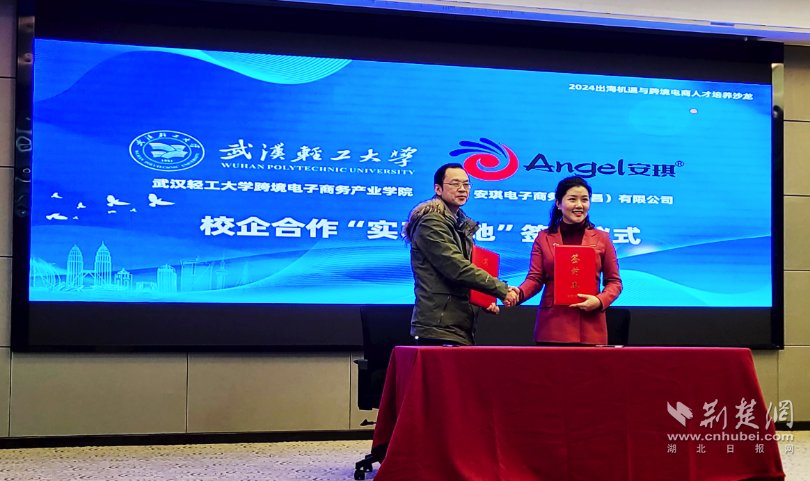 安琪電子商務(宜昌)有限公司黨支部副書記吳學云與武漢輕工大學跨境電子商務產業學院院長呂丹就雙方校企合作“實習基地”正式簽約,為雙方進一步發揮各自優勢,在人才輸送、技術轉化、科研合作等方面建立更加緊密的互動與協作機制。