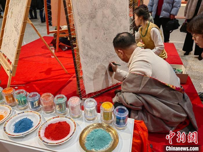 唐卡非遺傳承人在現場展示。應妮攝