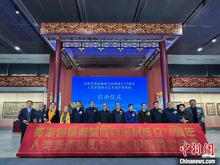 中新網北京12月28日電 (記者 應妮)青海省黃南藏族自治州成立七十周年·人類非遺熱貢藝術保護成果展,27日在中國工藝美術館·中國非物質文化遺產館正式開幕。