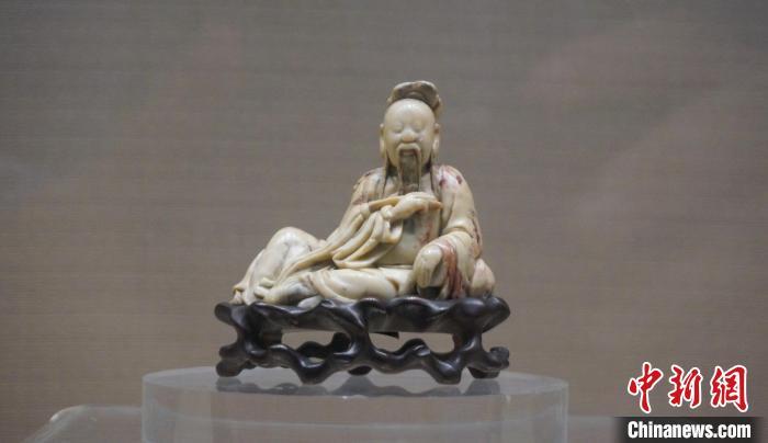 精品展上展出的清代壽山石人物坐像。 蔣豐慧 攝