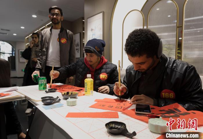 外國留學生手寫春聯和福字。中新網記者 楊迪 攝