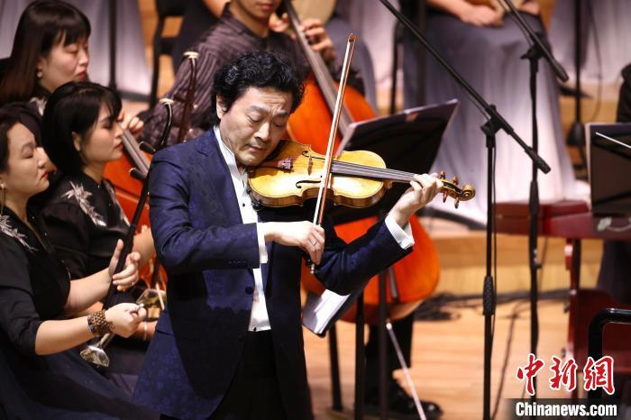 隨后,小提琴演奏家呂思清攜手樂團,奏響由著名作曲家趙季平創作、羅偉倫移植的《第一小提琴協奏曲》。此次是該曲由交響樂進行民族樂團移植后的首次亮相,通過東方化的表達方式輔以西方音樂技法,抒寫中國民族精神內核。現場觀眾在一片悠揚舒暢的旋律中感受中西方文化的交融,體味哲理思辨的樂思。