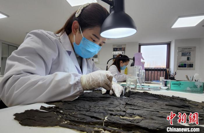 山東文物修復人員在修復戰國時期的絲織品。趙曉 攝