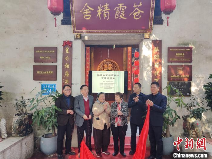 2日舉行的林紓古宅蒼霞精舍復建展示會上,林家后人、李家后人等一同為“蒼霞精舍”揭牌。中新網記者葉秋云攝