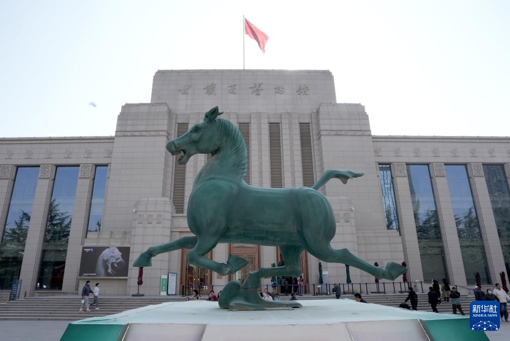 甘肅省博物館前矗立的銅奔馬雕塑(2023年10月27日攝)。