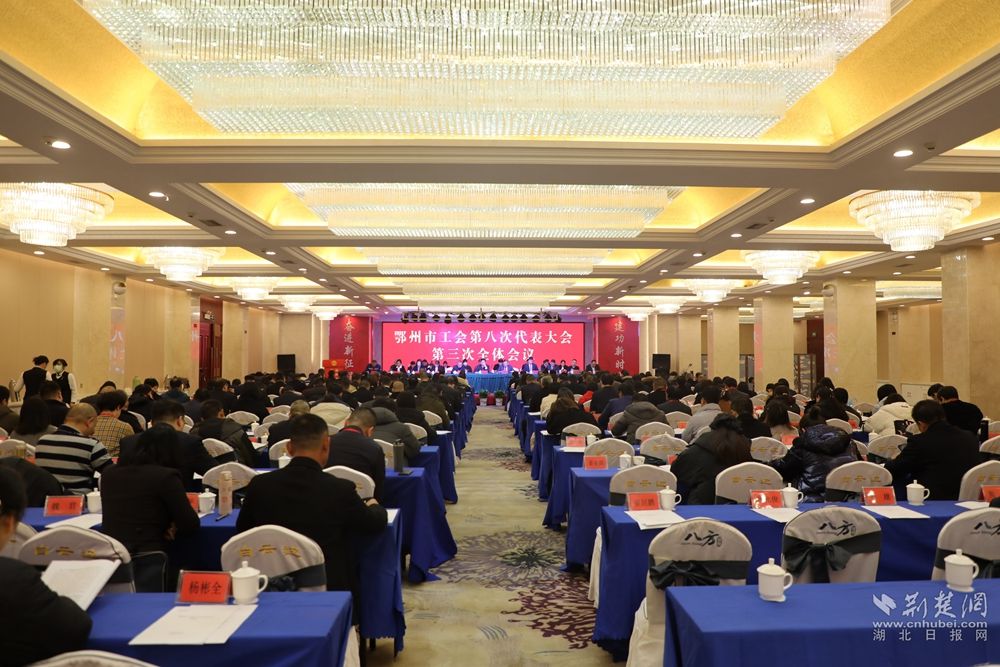 荊楚網(湖北日報網)訊(記者阮瓊 姜夢瑤 通訊員 魏君)1月5日,鄂州市工會第八次代表大會第三次全體會議舉行,市人大常委會黨組成員、副主任、市總工會主席葉祥明主持閉幕會,市總工會黨組書記、常務副主席劉江峰致閉幕詞。