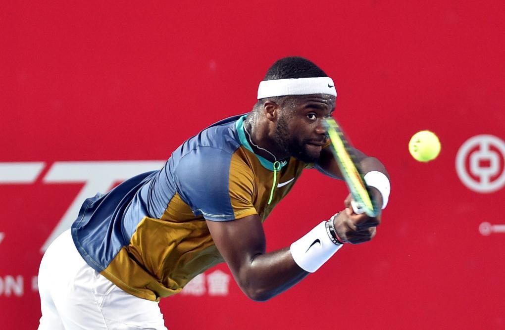 1月5日,蒂亞弗在比賽中回球。新華社記者 盧炳輝 攝