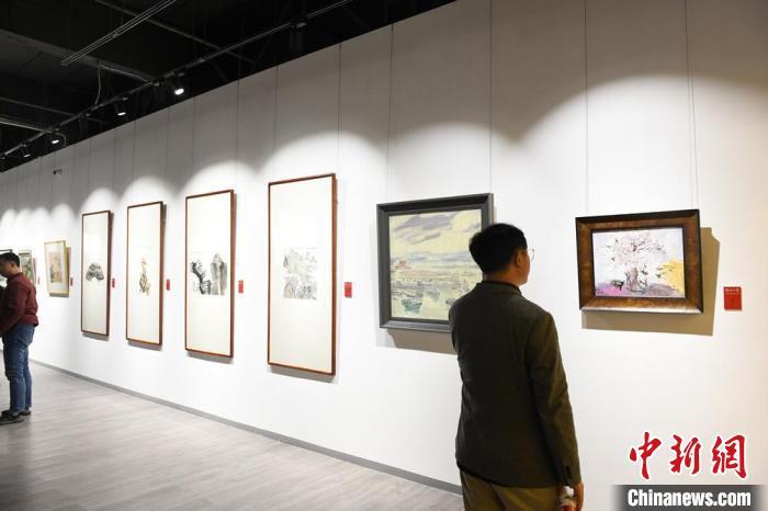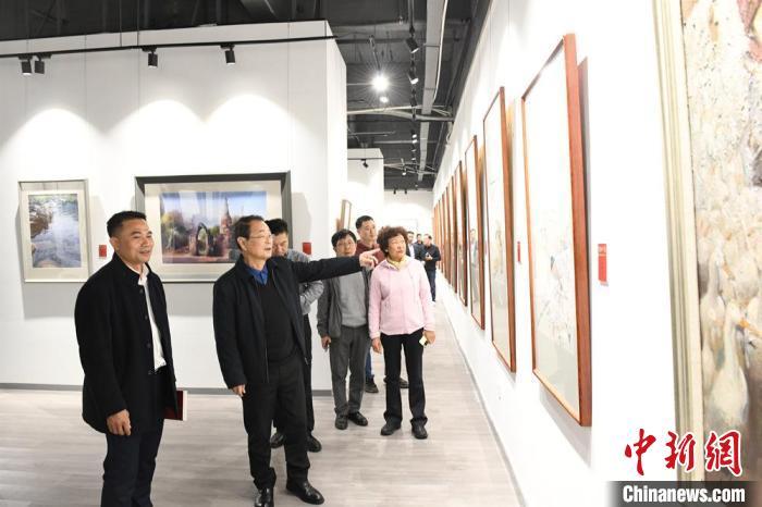 圖為中國美術家協會原副主席黃格勝等嘉賓觀看畫展。 記者 林浩 攝