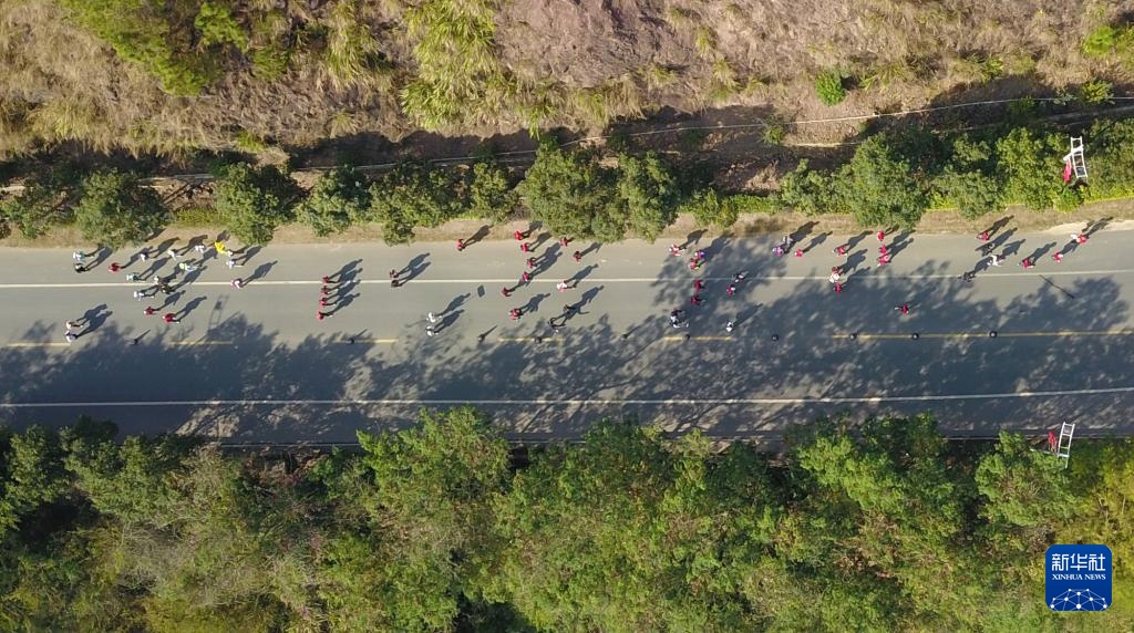1月6日,健身愛好者在徒步活動中(無人機照片)。