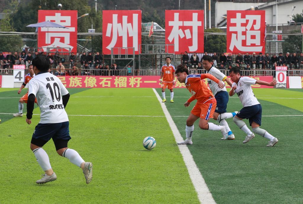 6日上午9時(shí)許,隨著清脆的哨音響起,分別代表口寨村和苗本村“出戰(zhàn)”的村民選手們?cè)诰G茵場(chǎng)上展開(kāi)激烈對(duì)抗,貴州“村超”2024年新賽季比賽正式啟動(dòng)。