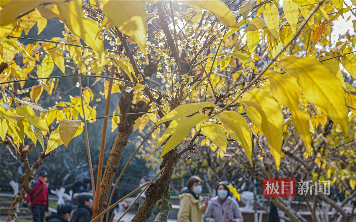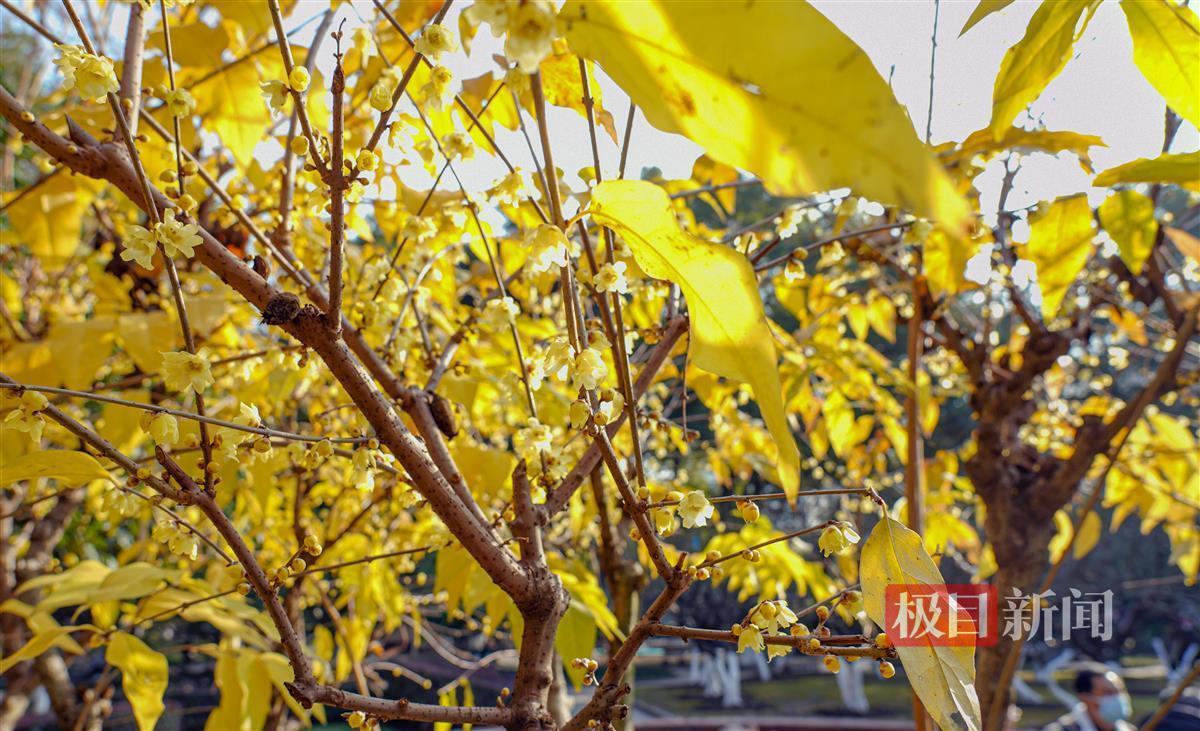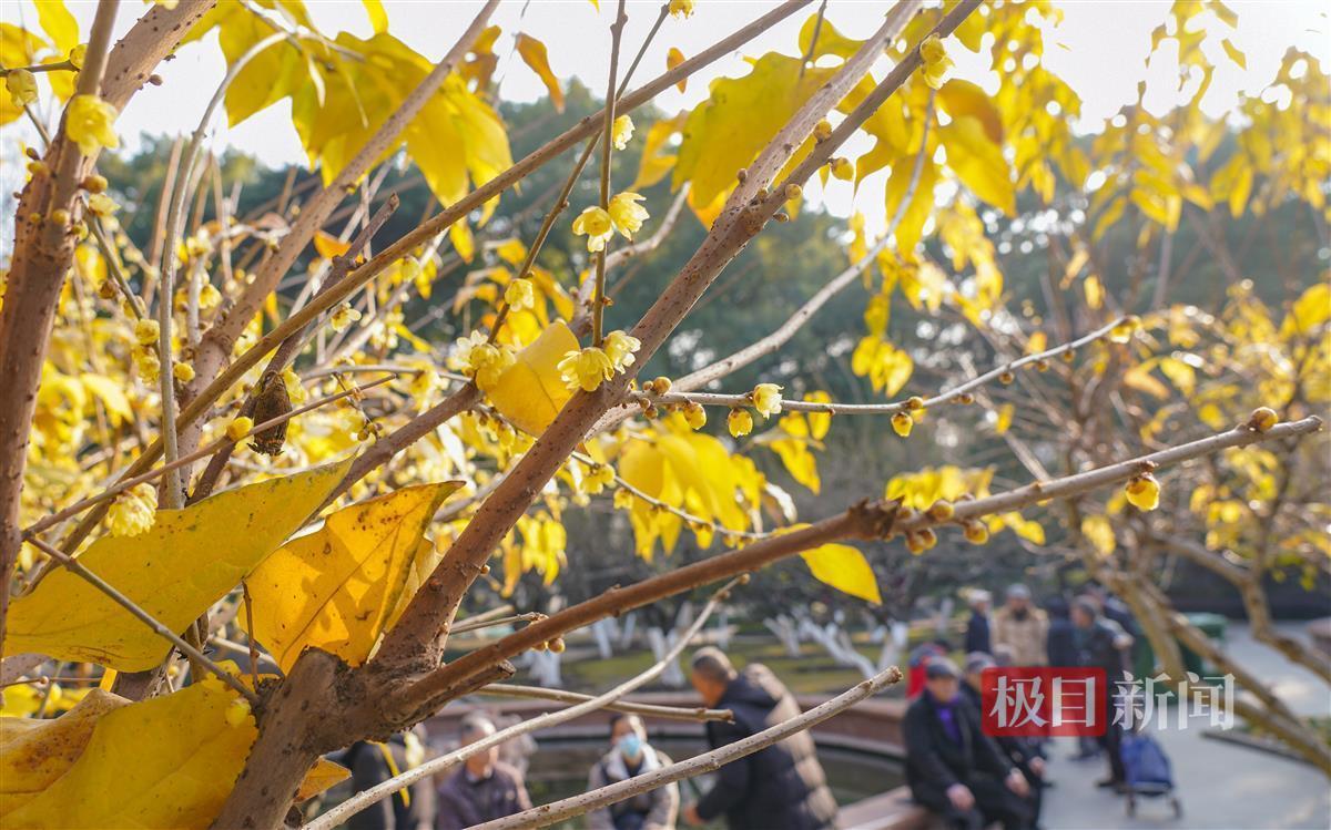 1月7日,漢口中山公園蠟梅園里,蠟梅在寒冬中悄然綻放,散發著一股淡淡的幽香沁人心脾。在草木凋零的冬天,金黃色的蠟梅宛如一片金色的海洋,為武漢的冬日增添幾分絢麗的色彩。許多游客賞花拍照樂在其中。