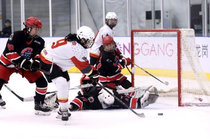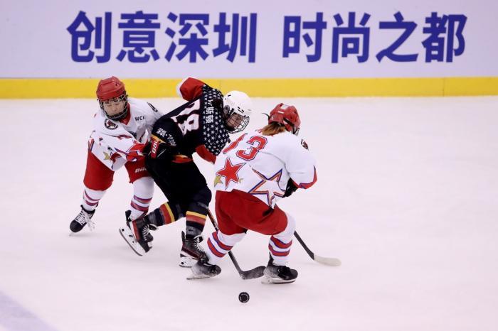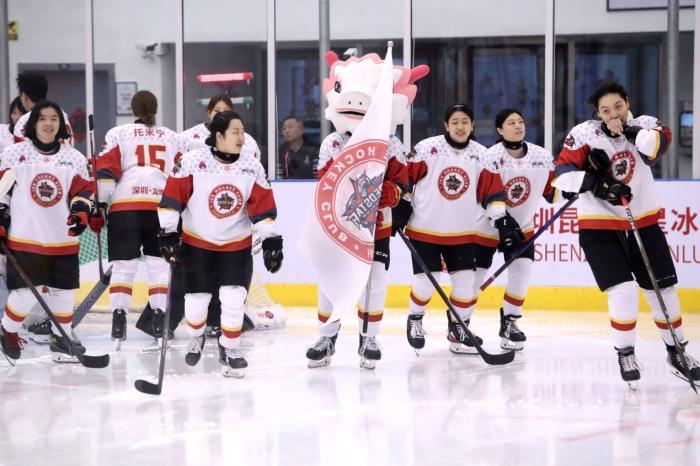 深圳昆侖鴻星女子冰球隊逆轉(zhuǎn)戰(zhàn)勝齊齊哈爾市蘭迪女子冰球隊。深圳昆侖鴻星女子冰球隊供圖