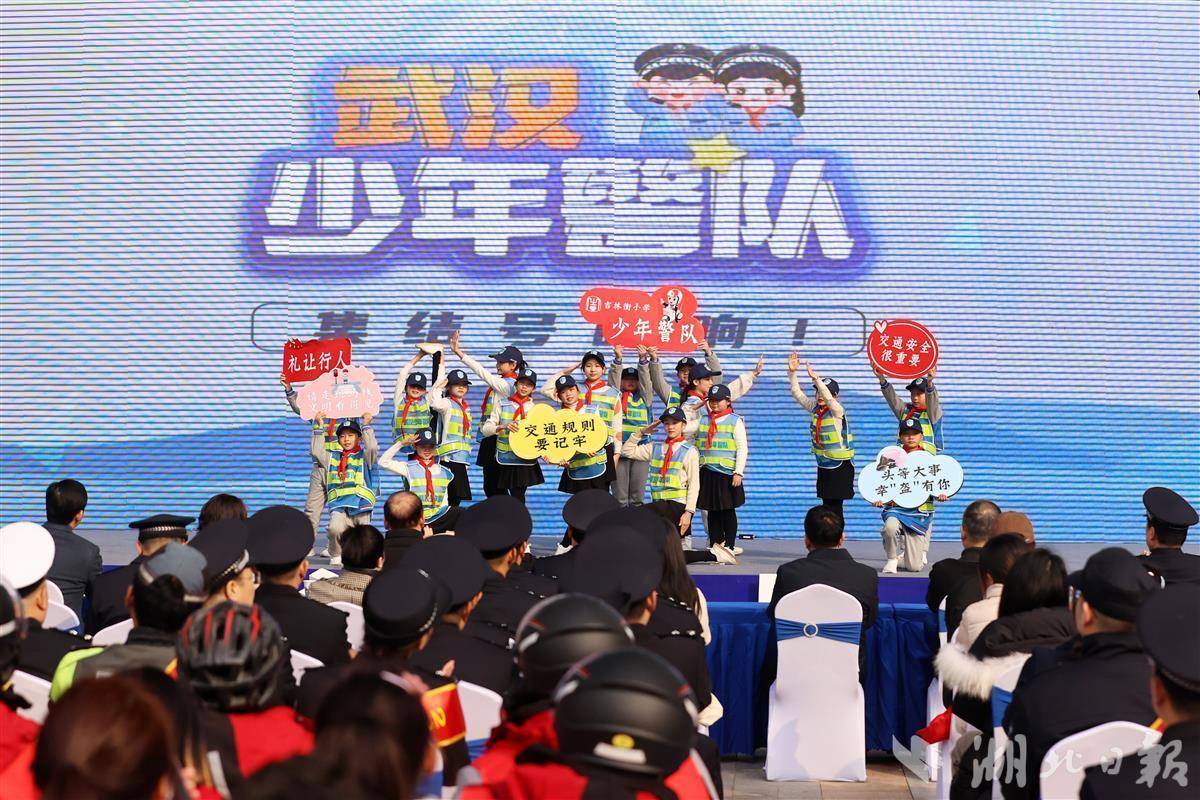2023年,武漢市公安局聯合武漢市教育局、湖北廣播電視臺共同開啟了“集結吧!少年警隊”主題安全活動。截至目前,該市700余所學校通過云平臺加入少年警隊,84000余名學生注冊成為少警隊員,線下累計開展各類安全教育活動260余場次。漢陽第三寄宿學校、育才怡康小學等36所學校被評為先進單位,其中的6所學校代表也來到活動現場,上臺領獎。