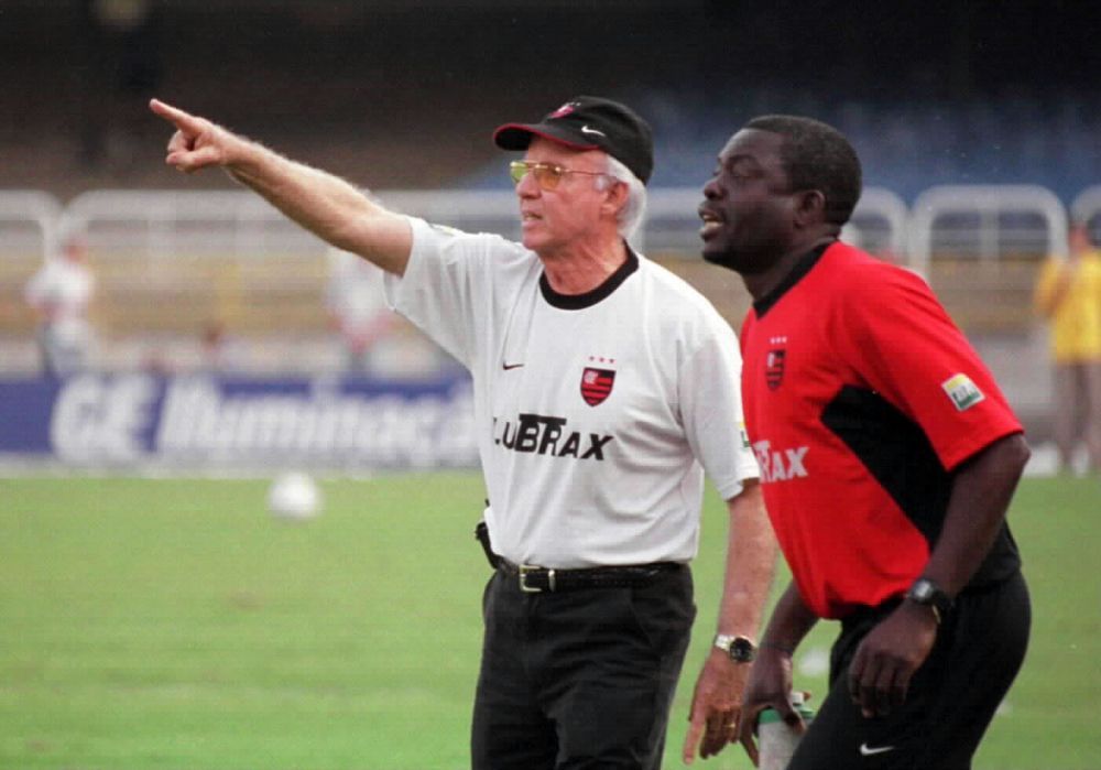 2001年8月8日,巴西著名足球教練扎加洛在里約熱內盧世界最大的馬拉卡納體育場指揮弗拉門戈隊迎戰巴拉那隊。新華社記者 楊建華 攝