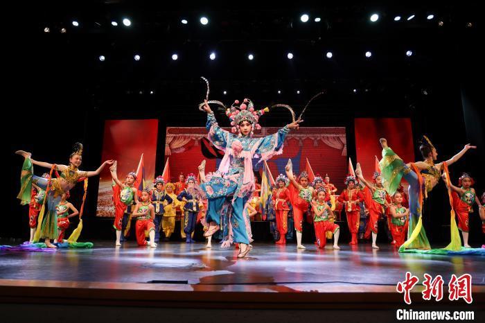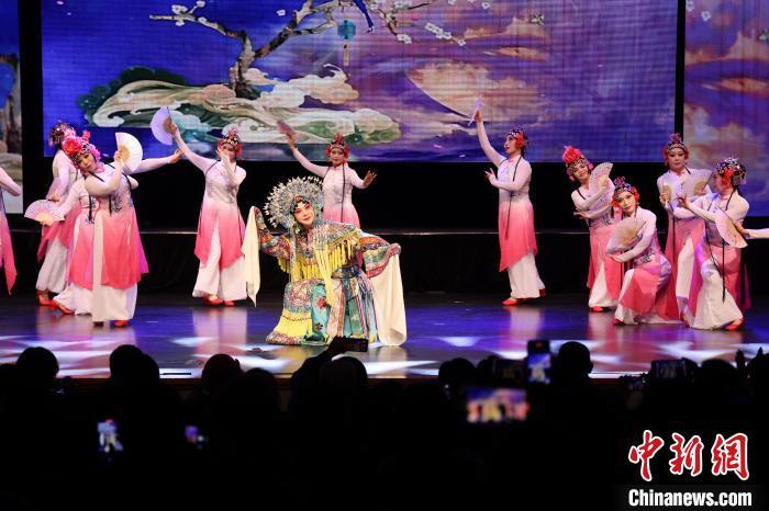 當(dāng)?shù)貢r間1月7日晚,2024年“歡樂春節(jié)”海外戲曲春晚·中國戲曲名家演唱會在加拿大多倫多舉行。圖為當(dāng)?shù)厍嗌倌陸蚯鷮W(xué)習(xí)者及文藝團(tuán)體表演開場舞?!≈行律缬浾?余瑞冬 攝