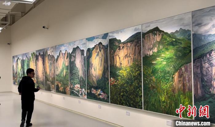 “山鄉(xiāng)巨變——中國式現(xiàn)代化的貴州實踐”美術(shù)家寫生創(chuàng)作作品展暨從“徐悲鴻的貴州土紙”開始——中國美術(shù)新體驗作品展在上海海派藝術(shù)館正式亮相。中新網(wǎng)記者謝夢圓攝