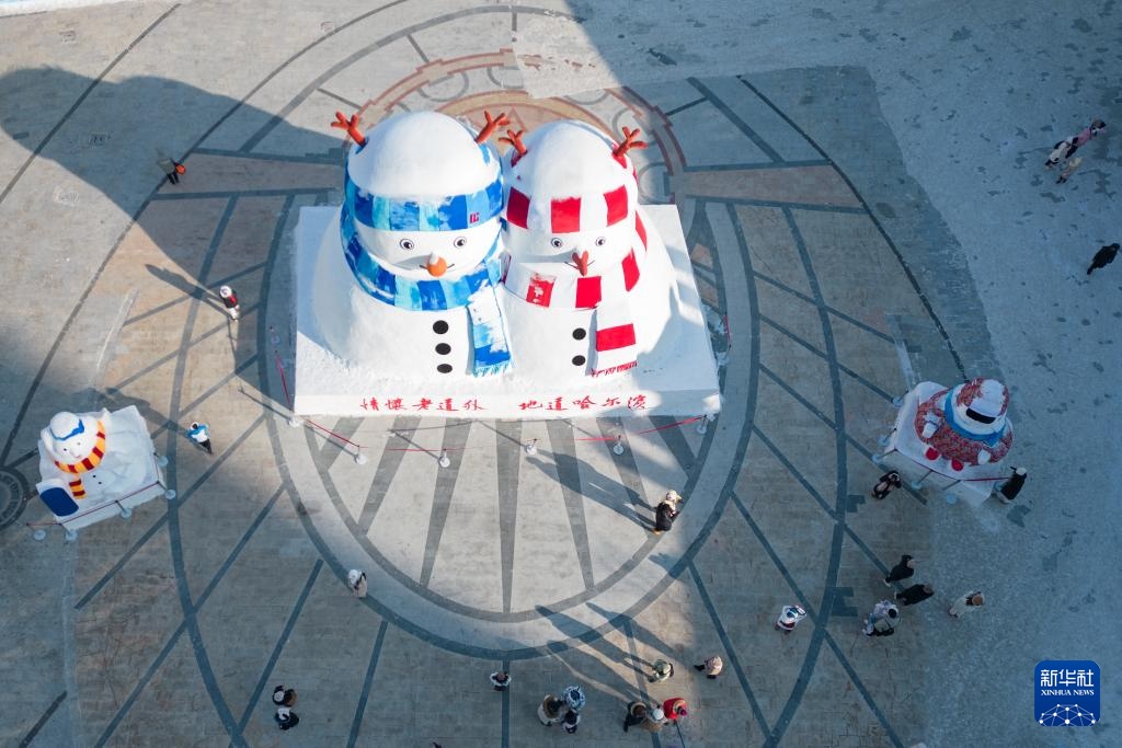 1月8日,游客在哈爾濱市道外區(qū)中華巴洛克歷史文化街區(qū)內(nèi)游玩(無(wú)人機(jī)照片)。