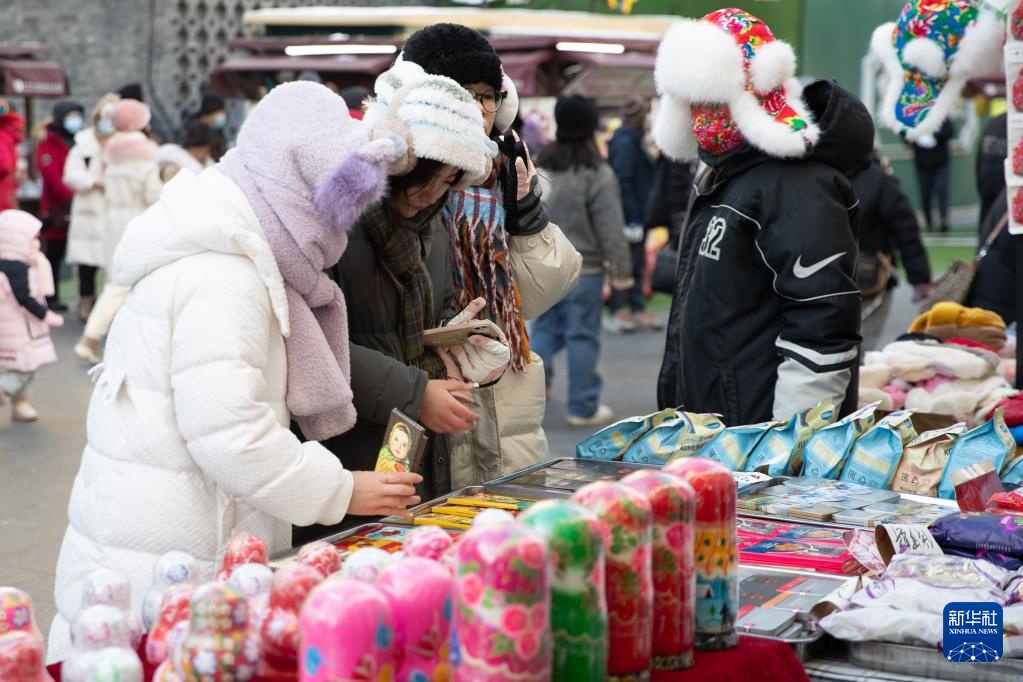 1月8日,游客在哈爾濱市道外區(qū)中華巴洛克歷史文化街區(qū)內(nèi)選購(gòu)紀(jì)念品。