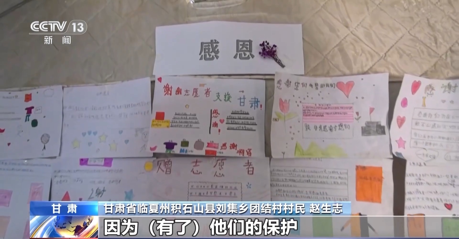 甘肅省臨夏州積石山縣劉集鄉團結村村民 趙生志:有時候我們吃飽了飯,他們還吃不上飯,為了啥,為的就是我們災區人民。他們一來,我們睡得也香了,心里都舒坦得很,因為有了他們的保護,我們就能睡著了。