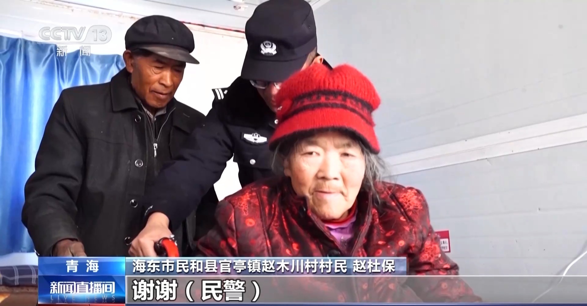 青海省海東市民和縣官亭鎮趙木川村村民 趙杜保:一個小時過一點他們就拿過來了,要不然我一個人很費勁,我一個人抱老奶奶抱不動,我年齡也大了,她現在身體也重。謝謝民警。