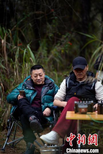 圖為制片人張彤(左)與導演邢鍵鈞(右)在劇版《三大隊》拍攝現場。 受訪者供圖