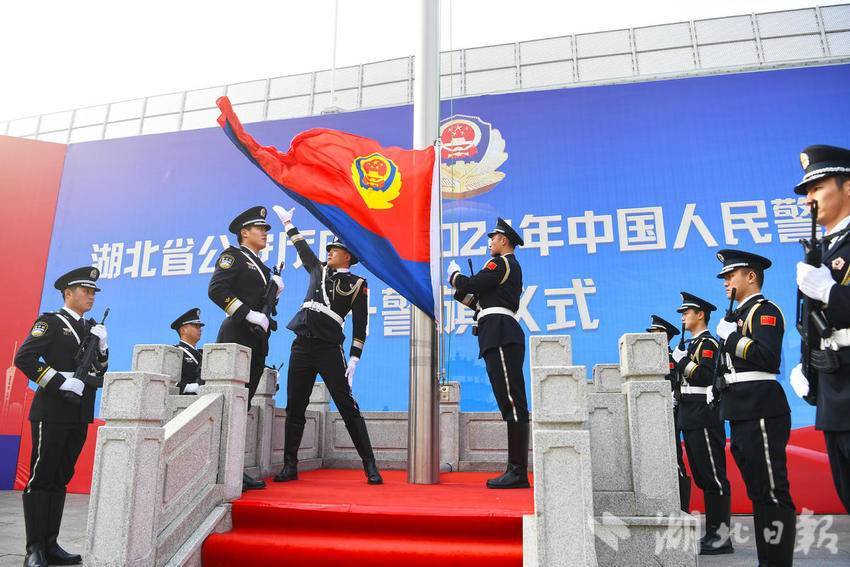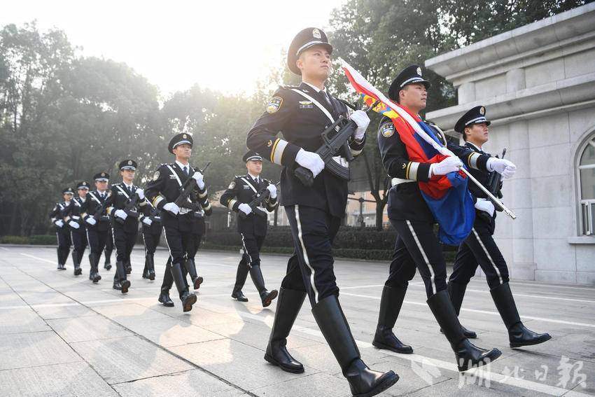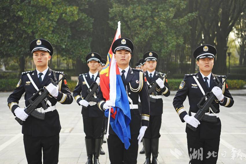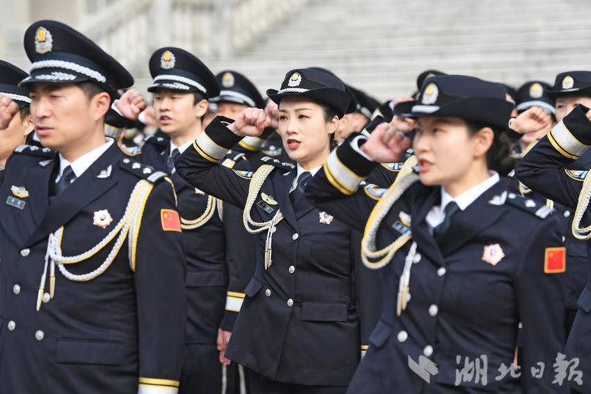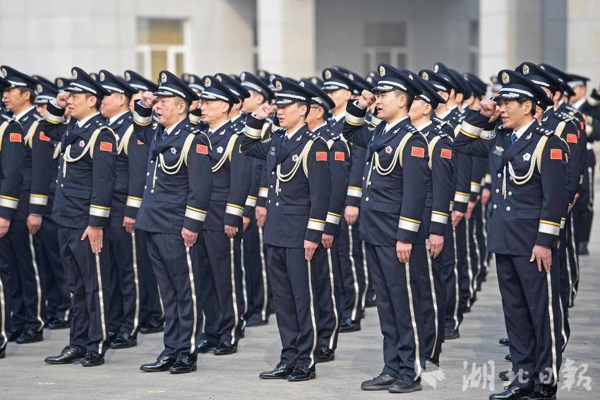 1月10日上午,湖北省公安廳舉行慶祝中國人民警察節升警旗儀式,以慶祝第四個中國人民警察節。260余名公安干警身著警禮服,注目敬禮,高舉右拳,面向警旗莊嚴宣誓。錚錚誓言響徹云霄,彰顯湖北公安對黨忠誠、服務人民、執法公正、紀律嚴明的政治本色。(湖北日報全媒記者李溪攝)