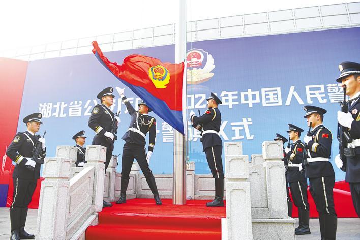 1月10日,第四個中國人民警察節(jié)。上午,省公安廳舉行升警旗儀式,現(xiàn)場260名公安干警注目敬禮,面向警旗莊嚴宣誓。 (湖北日報全媒記者 李溪 攝)