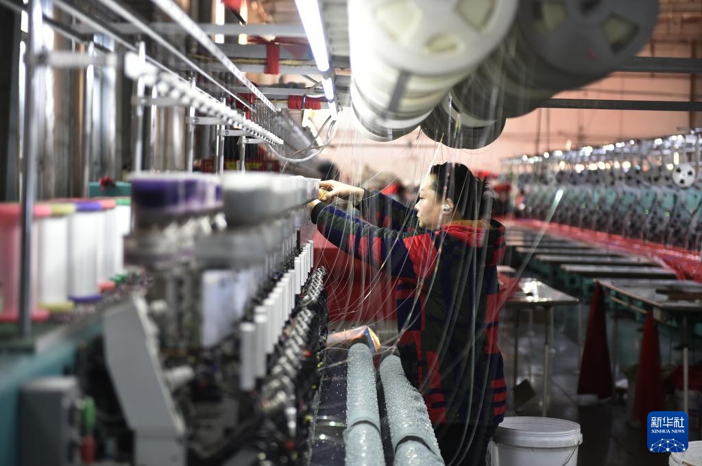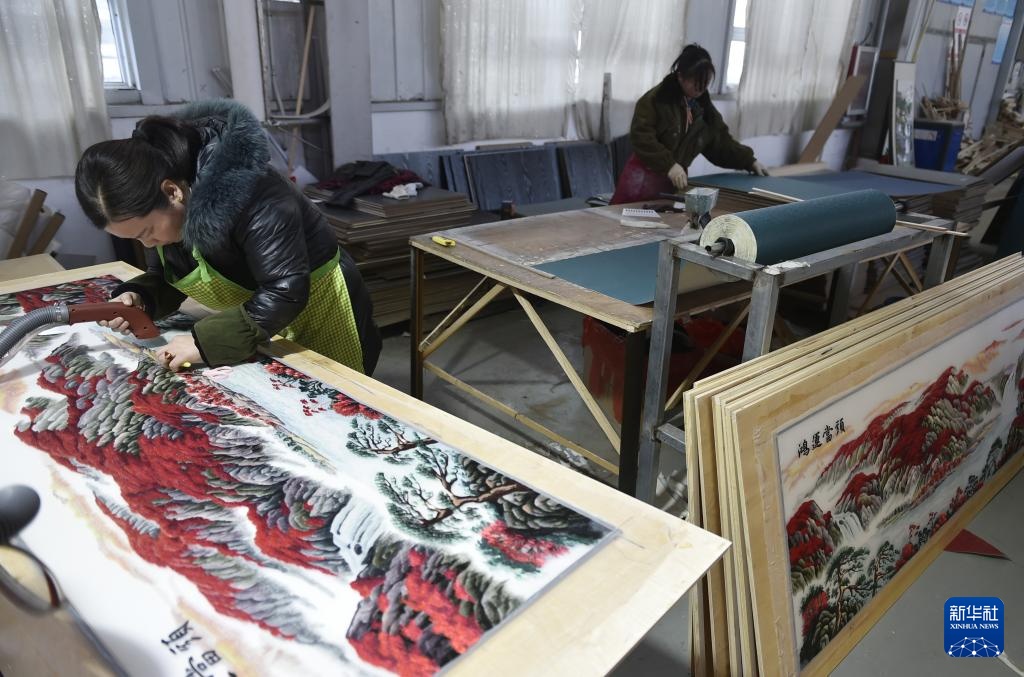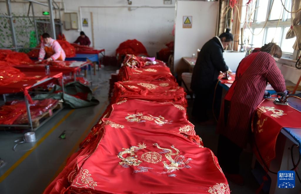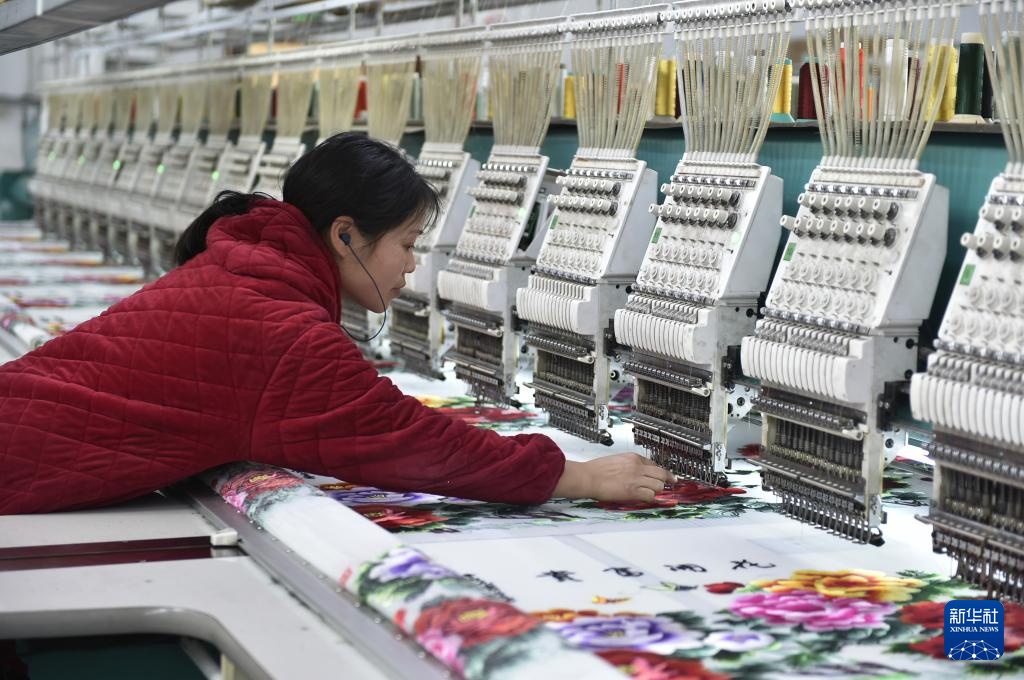 1月9日,汝州市汝繡產業園一家機繡企業的工人在生產車間內作業。