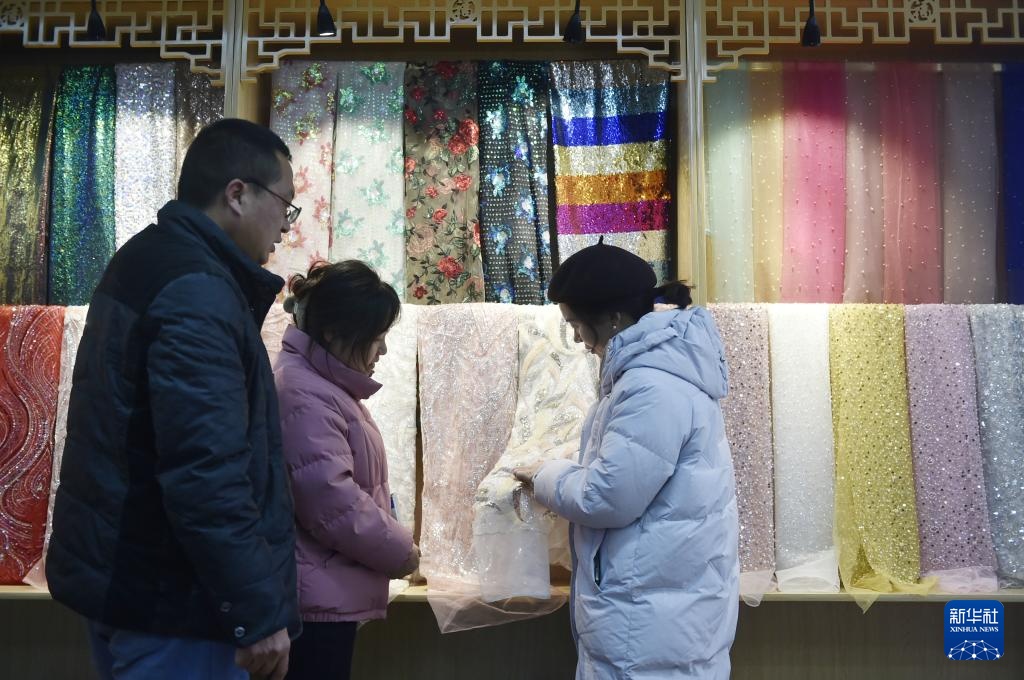 1月9日拍攝的汝州市汝繡產業園一家機繡企業的產品展廳。