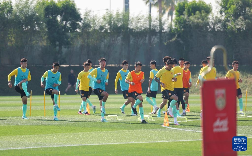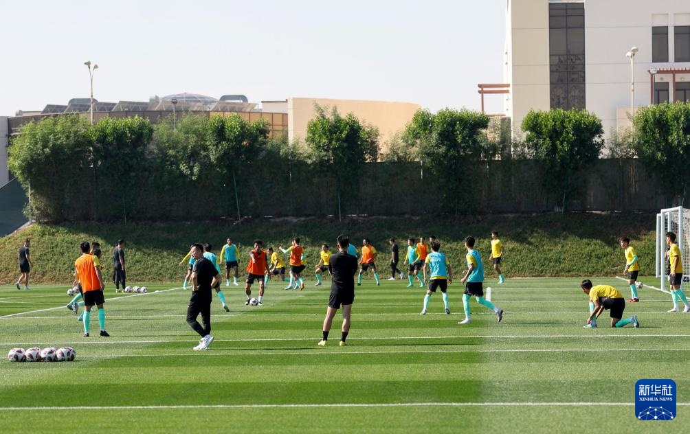 當日,中國國家男子足球隊在卡塔爾多哈進行訓練,備戰將于1月12日開賽的卡塔爾男足亞洲杯。