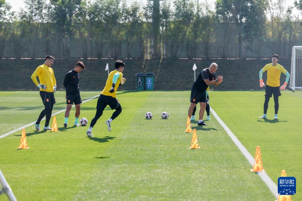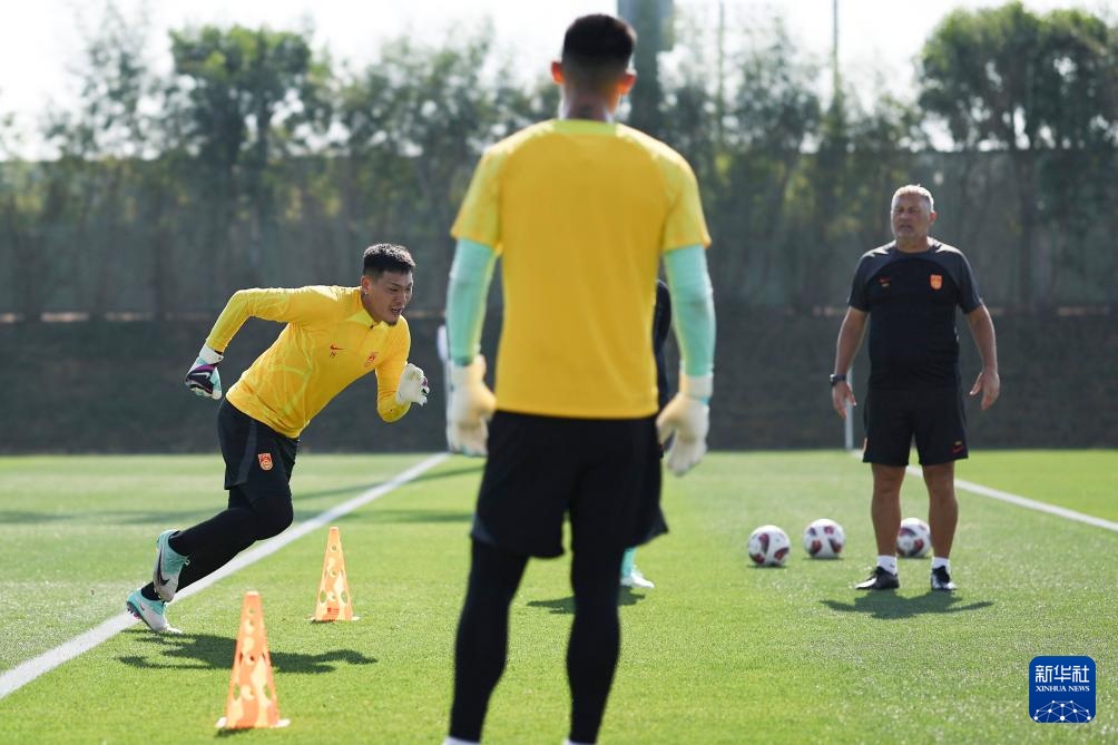 1月10日,助理教練組織中國隊守門員訓練。新華社記者 孫凡越 攝