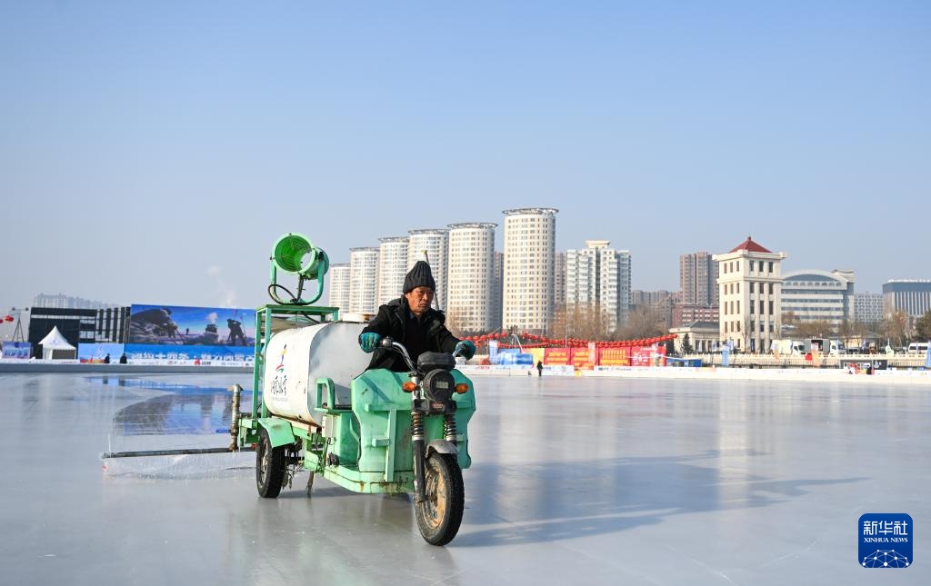 1月10日,工作人員在東河冰場澆冰。新華社記者 貝赫 攝