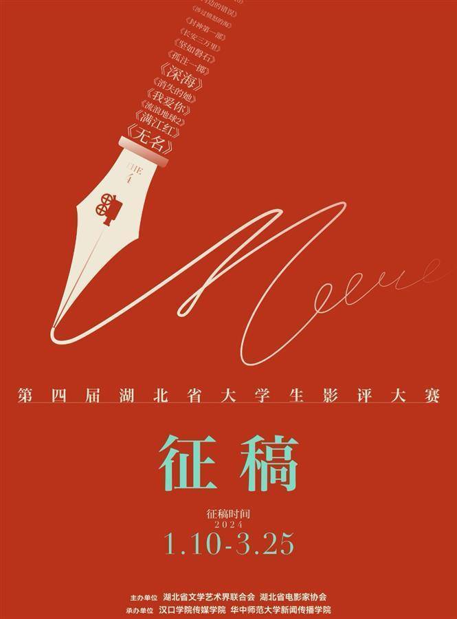 湖北日報訊(記者農(nóng)新瑜、通訊員聶智園)從湖北省文聯(lián)獲悉,為發(fā)掘青年電影評論人才,推動湖北電影事業(yè)繁榮發(fā)展,由湖北省文聯(lián)、省電影家協(xié)會主辦,漢口學(xué)院傳媒學(xué)院、華中師范大學(xué)新聞傳播學(xué)院承辦,省電影家協(xié)會青年電影工作委員會及省內(nèi)外十七所單位聯(lián)合協(xié)辦的第四屆湖北省大學(xué)生影評大賽已正式啟動,即日起面向全國各高校在校大學(xué)生征稿。