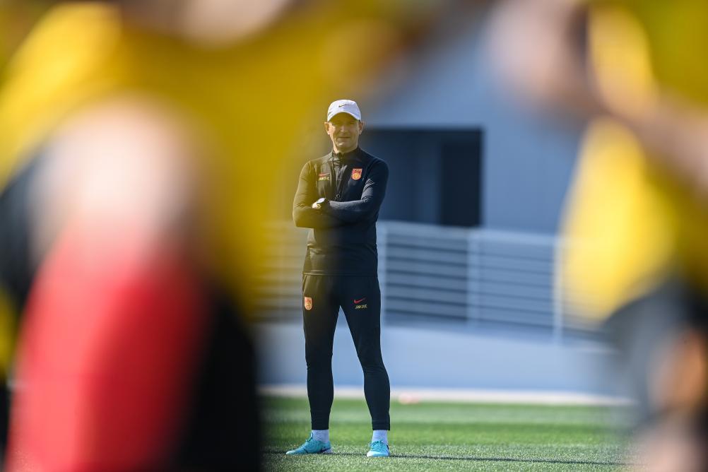 1月11日,中國隊主教練揚科維奇觀摩球隊訓練。新華社記者江漢攝