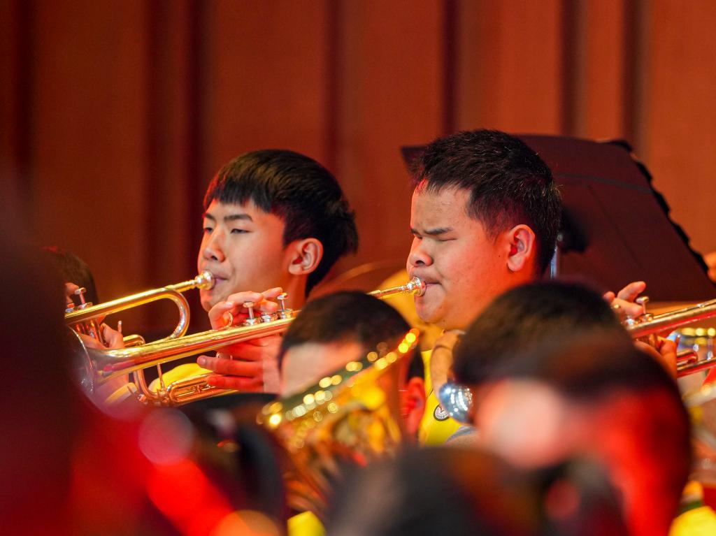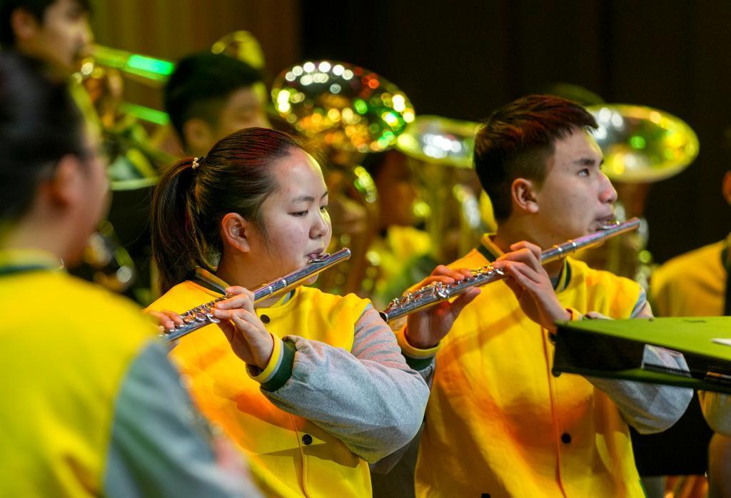 2023年12月28日,在重慶市特殊教育中心的揚帆音樂廳,揚帆管樂團成員在排練新年音樂會節目。