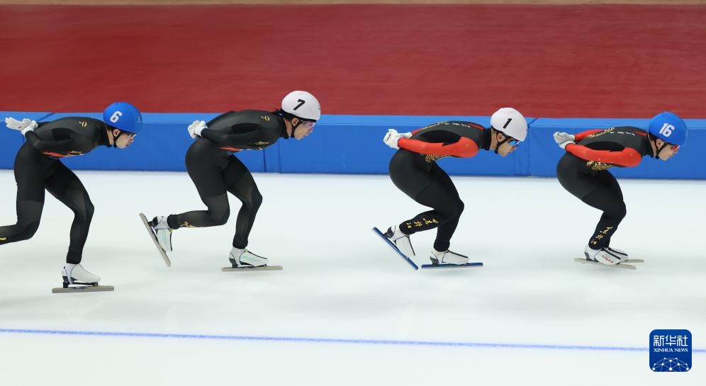 1月11日,遼寧隊選手沈晗揚(左一)、黑龍江隊選手寧忠巖(右二)在比賽中。新華社記者 王楷焱 攝
