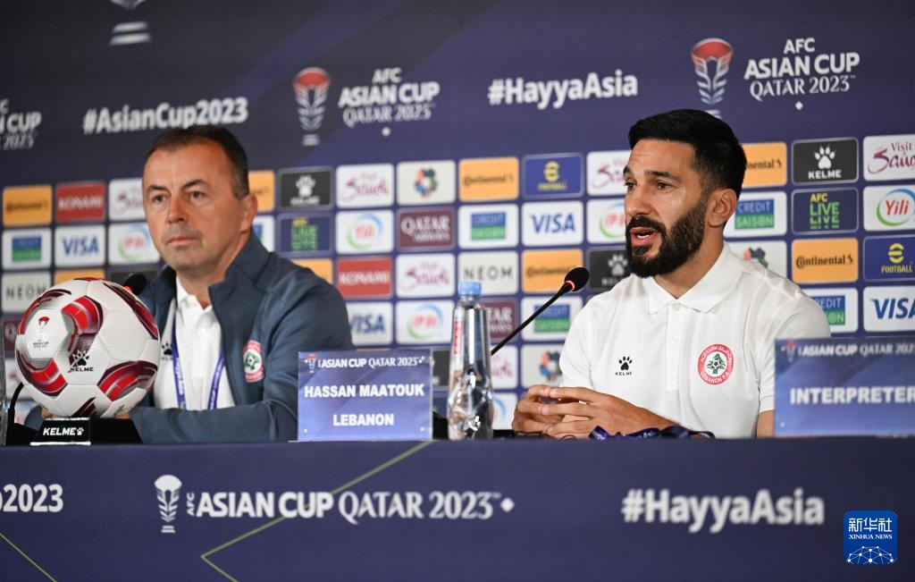 1月11日,黎巴嫩隊球員哈桑·馬圖克(右)在新聞發布會上。新華社記者 孫凡越 攝