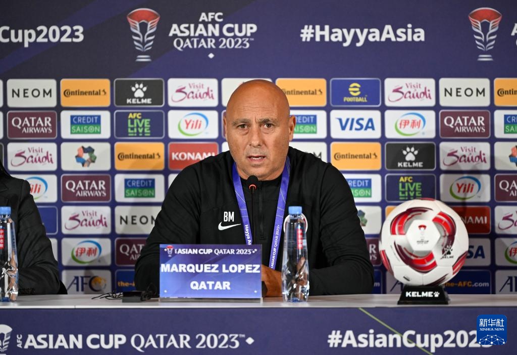 1月11日,卡塔爾隊主教練巴托洛梅·馬爾克斯在新聞發布會上。新華社記者 孫凡越 攝