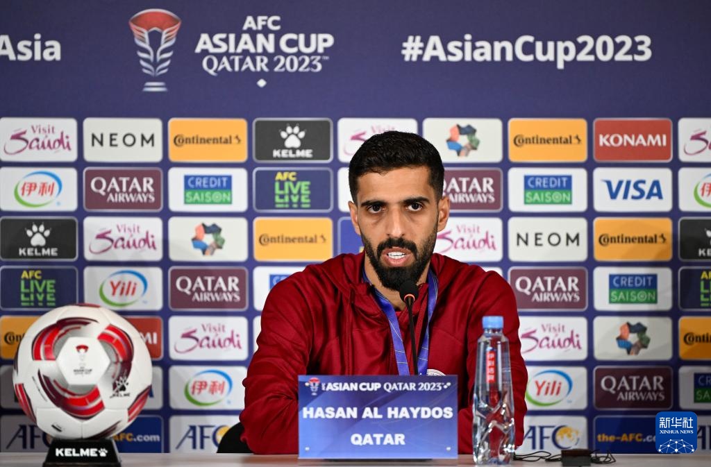 1月11日,卡塔爾隊球員哈桑·海多斯在新聞發布會上。新華社記者 孫凡越 攝
