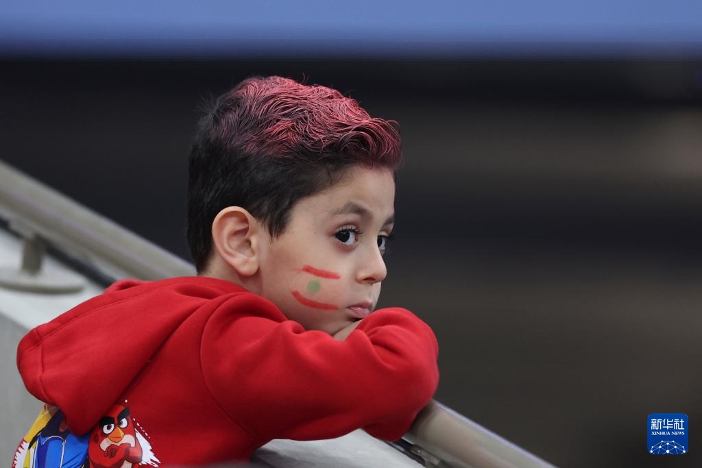 1月12日,一名小觀眾在看臺觀看開幕式。